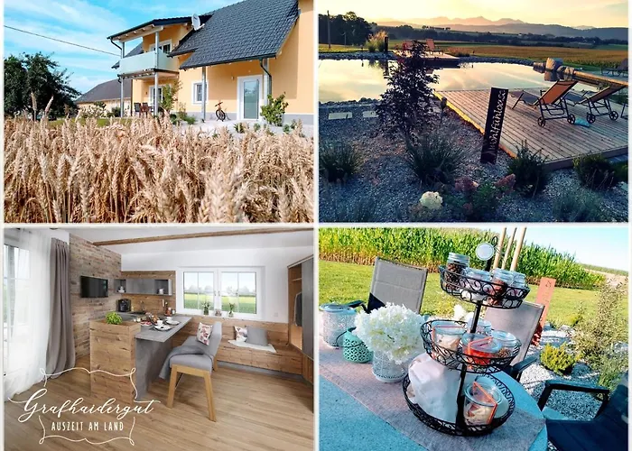 Z 9-pokojowego Grafhaidergut - Urlaub Am Bauernhof - Auszeit Am Land Wartberg an der Krems roztacza się widok na basen, a goście mają do dyspozycji saunę. Mediterrana Therme znajduje się w odległości 4 km od, a lotnisko Linz jest oddalone o mniej niż 41 minut jazdy samochodem.